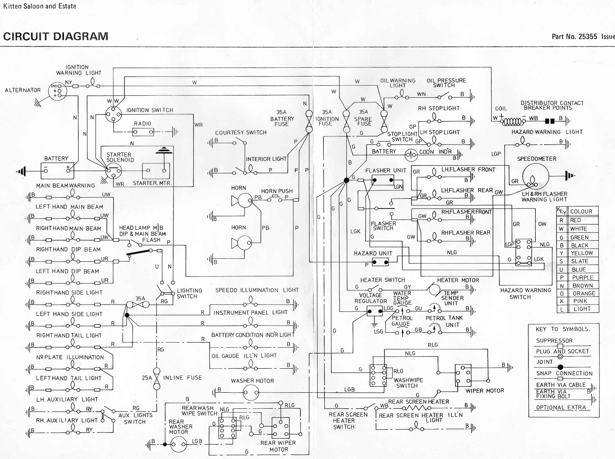 Reliant Kitten Saloon, Estate and Van Wiring Diagram